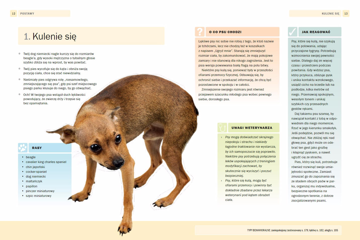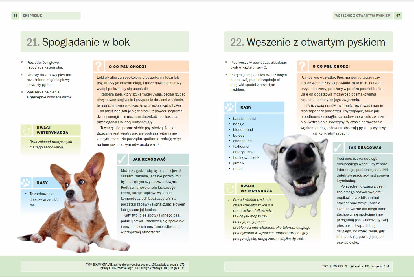 Specjalistka od komunikacji – Arden Moore – porządkuje wiedzę na temat psiej mowy ciała, klasyfikuje zachowania i postawy, wyjaśnia, jak należy je rozumieć. To szczególny „słownik”, który pozwoli nam lepiej poznać naszych ulubieńców i stworzyć z nimi głęboką, zdrową relację. Zadbajmy, by zawsze mieć go pod ręką.