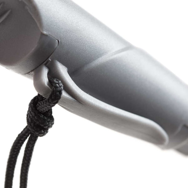 Wyposażenie w specjalny zaczep pozwala w wygodny sposób zaczepić gwizdek o szlufkę spodni, kieszeń czy bluzę. Dodatkowo długi nylonowy sznurek pozwala zawiesić gwizdek na szyi bez ryzyka jego szukania czy zgubienia w czasie aktywności.