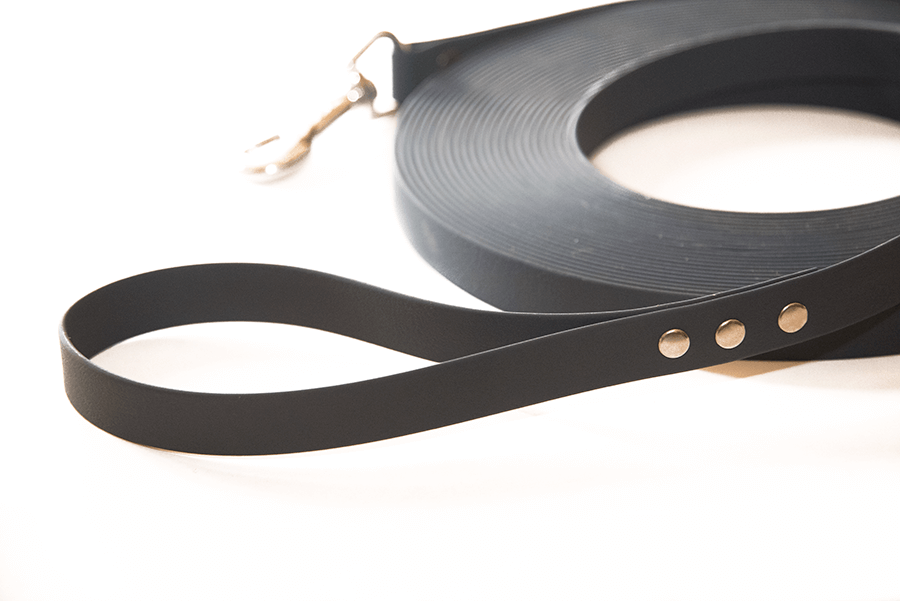 Płaska linka z nowoczesnego materiału - taśmy poliestrowej pokrytej PVC/TPU (typu biothane). Jest znacznie bardziej wytrzymała niż typowa taśma polipropylenowa. Materiał ten jest odporny na ścieranie i wodę, trwały i długowieczny. Jego zaletą jest również łatwość czyszczenia i utrzymania - nie wymaga specjalnego traktowania. Po użyciu wystarczy opłukać ją wodą.