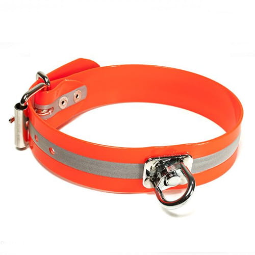 Obroża tropowa Mystique® Biothane wyposażona w krętlik sprawdzi się doskonale zarówno podczas szkolenia psa, jak i w łowisku. Jest wykonana z mocnego materiału BioThane®, który jest odporny na wilgoć i pleśń. Zapinana na wytrzymałą metalową klamrę. Intensywny pomarańczowy kolor zwiększa widoczność psa, a tym samym zwiększa jego bezpieczeństwo. Dodatkowo posiada odblaskowy pasek dla lepszej widoczności o zmierzchu.