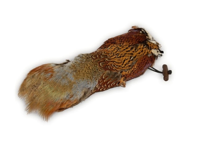 Skóra bażanta przymocowana do sztucznego aportu jest pomocna w przyzwyczajaniu psa do aportowania prawdziwej zwierzyny . Pozwalają psu zapoznać się ze strukturą "pióra" oraz zapachem bażanta.