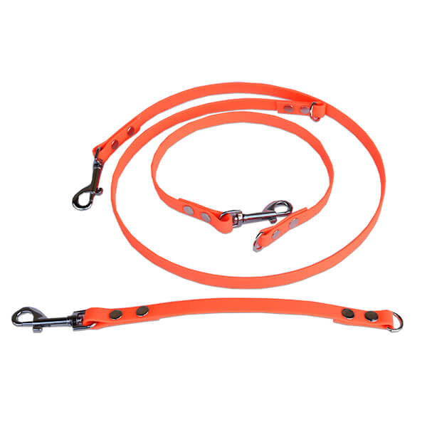 Smycze są zupełnie gładkie, nie zaczepiają się na końcu posiadają bardzo małe kółko, umożliwiające dopięcie drugiej smyczy, bez zbędnego zbliżania się do czworonoga.
